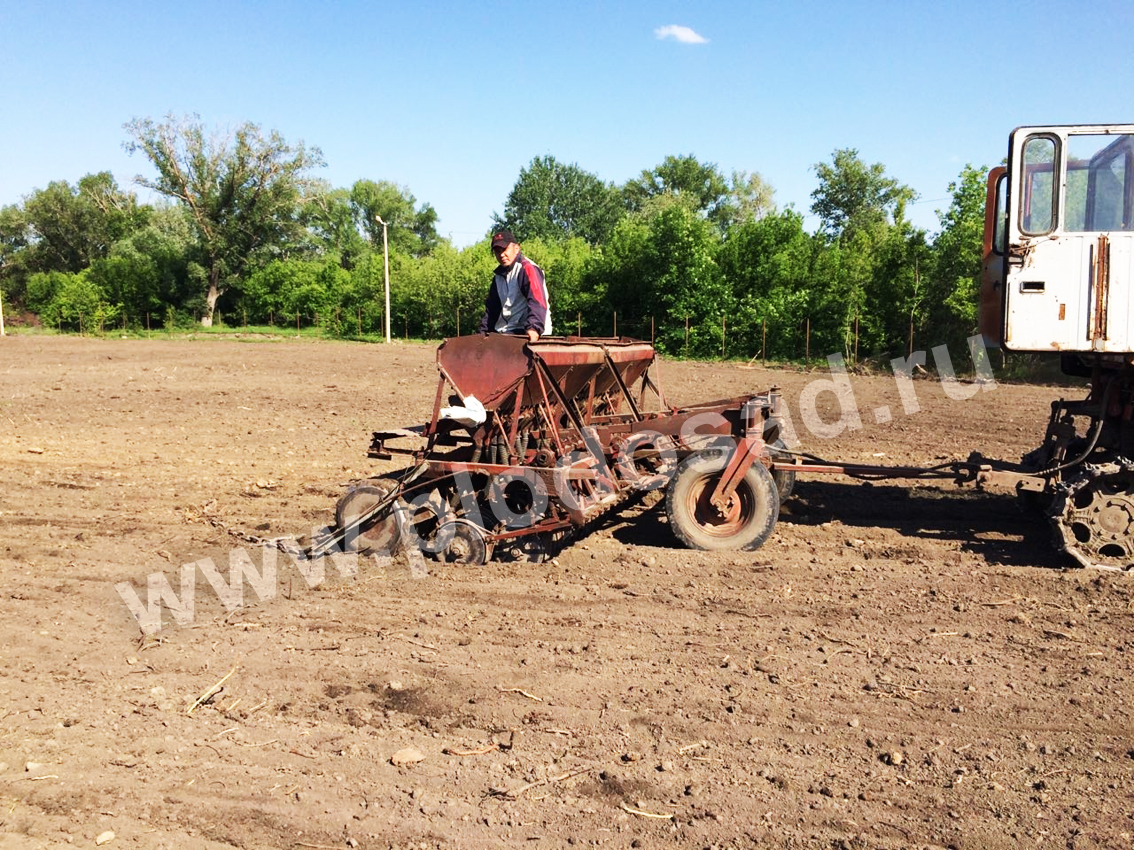 Кайрат посеял сидераты (на фото – это он сам на сеялке), выбрав для этого белую горчицу. Она в почву и азота добавит, и выполнит роль антисептика, ведь после выкорчевки старого сада в земле наверняка осталась какая-то инфекция.